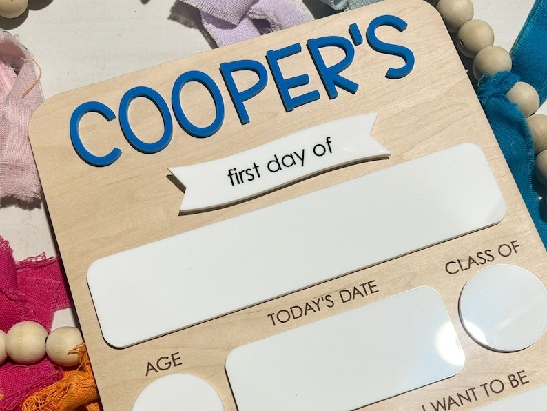 Mark your childâs academic journey with the My First Day of School Sign Back to School Board, a reusable and fully personalized milestone sign that brings extra joy and excitement to their school photos. Whether itâs daycare, kindergarten, or high school, this back-to-school board is the perfect way to document their big day, year after year.