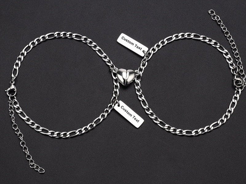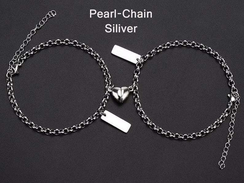 - Choose Style Select from our range of magnetic couple bracelet designsâminimalist, engraved, braided, or classic chain.