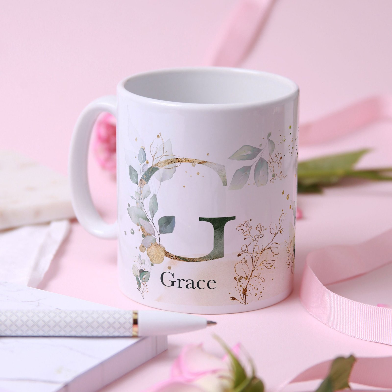 - šļø Name PersonalisationĀ Add a name below or beside the initial in your chosen typography, creating a truly bespoke item that stands out on every desk or kitchen shelf.